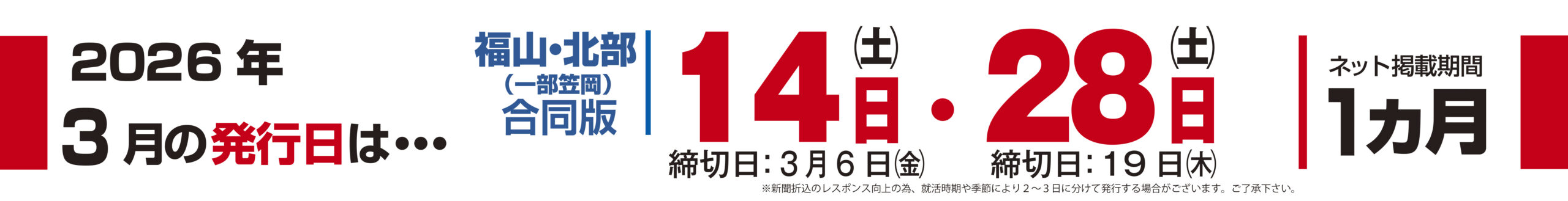 福山・北部(一部笠岡)エリアで合同版を発行します。